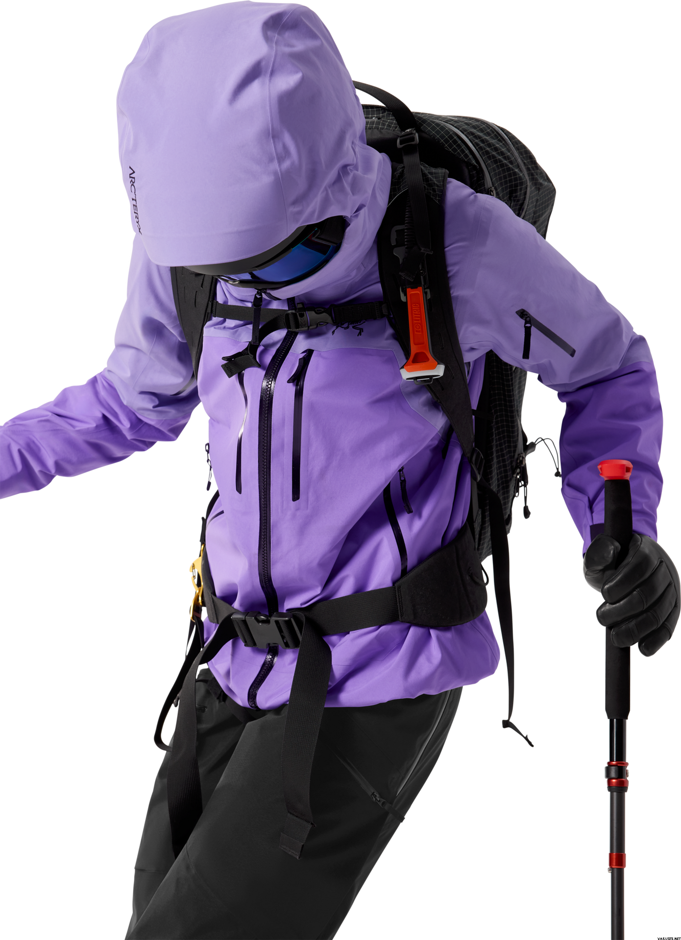 - Elastyczna, wiatroszczelna i wodoodporna kurtka N80p 3L Gore-Tex z technologią C-KNIT Backer jest cicha i miękka, a przy tym zapewnia doskonałą oddychalność