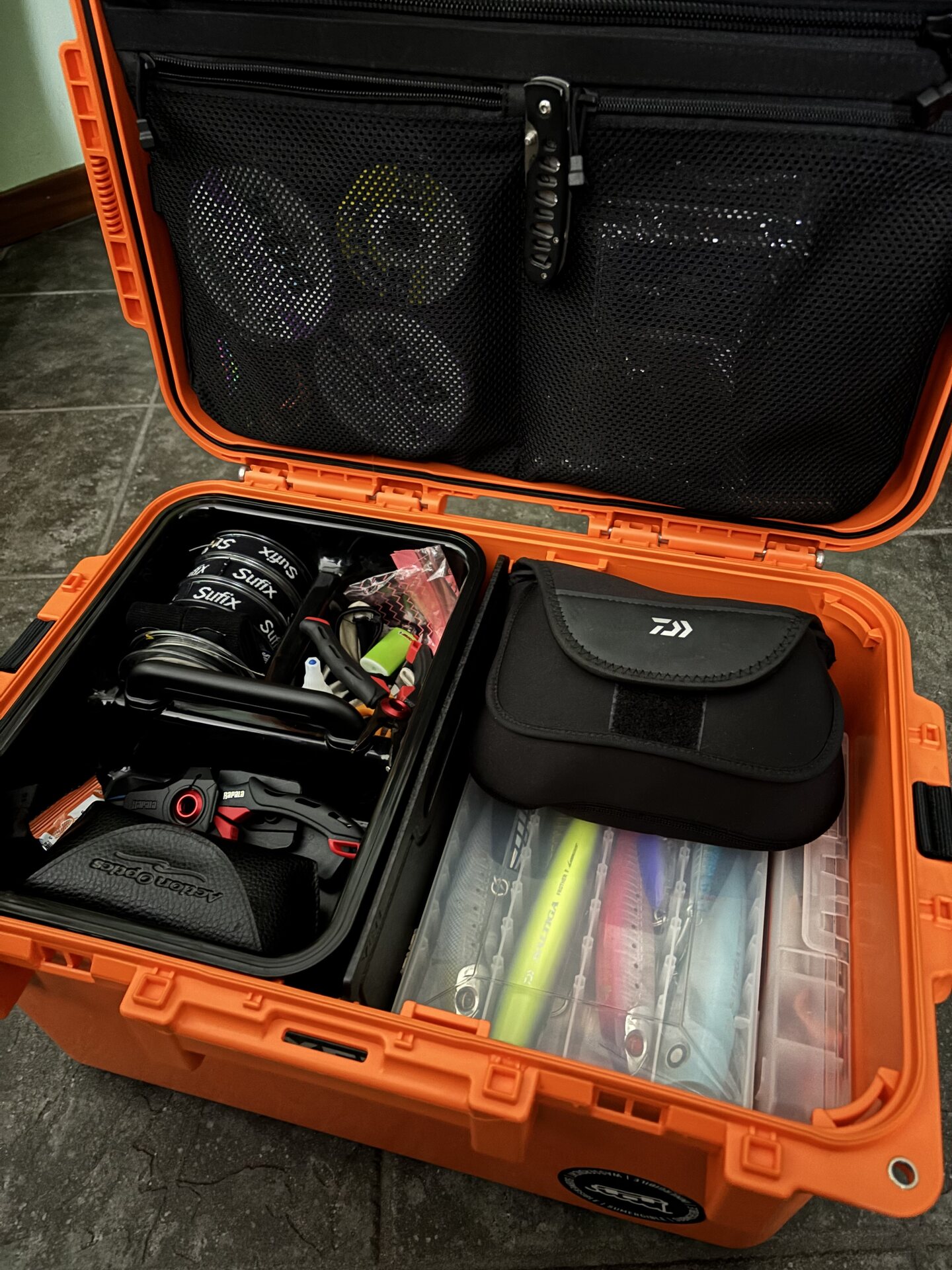 Solidnie wykonany schowek z dobrym sprzętem gotowym do użycia w środku. Pasek do noszenia jest funkcjonalny, a mnie osobiście podoba się to, że pokrywa jest na zawiasach, a nie całkowicie odpinana.