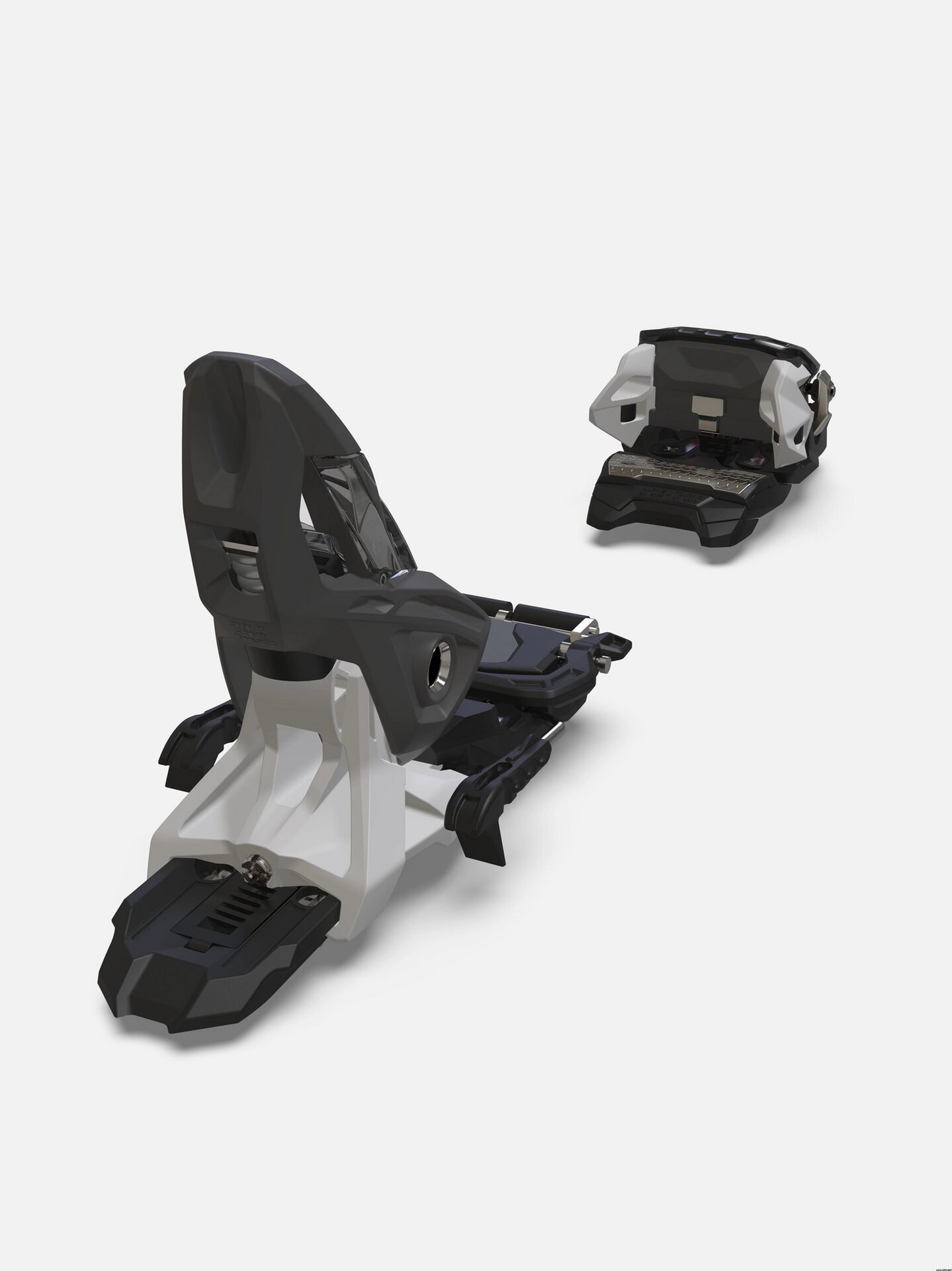 THe Duke PT 11 with a DIN 3-11 combines the performance of a Squire with comfortable uphill properties of a pin binding. For walking mode the upper part is simply unlocked and tilted forward, uncovering the pin binding. To save swing weight the upper jaw part can be taken off and stored in a backpack. The multi functional Lock & Walk unit automatically locks the brakes and provides a 10° climbing aid. For downhill mode the front jaw section is clicked back onto the base plate, quadruple secured by the Auto Quad Lock technology. The heel is the latest generation of Inter Pivot heels. The low height of 24 mm allows for direct power transmission and fast edge changes.