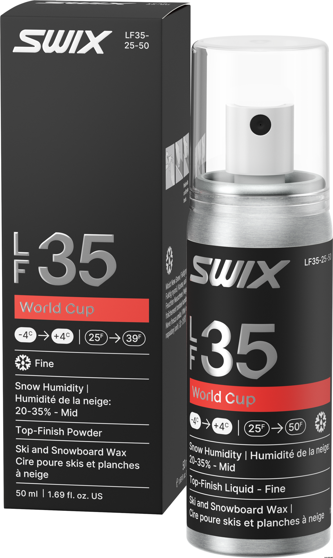 Osiągnij wyjątkową prędkość na świeżym, drobnym śniegu dzięki płynowi Swix World Cup Liquid Fine Mid o pojemności 50 ml. Ten zaawansowany płynny lakier nawierzchniowy, stworzony w oparciu o najnowocześniejszą technologię Lotus, tworzy szybką, hydrofobową warstwę, która zmniejsza tarcie i poprawia poślizg w temperaturach około zera. Idealny na wyścigi na świeżym śniegu, najlepiej sprawdza się przy wilgotności powietrza 20–35%. Aplikacja jest prosta: spryskaj równomiernie i wypoleruj miękką, nylonową szczoteczką.