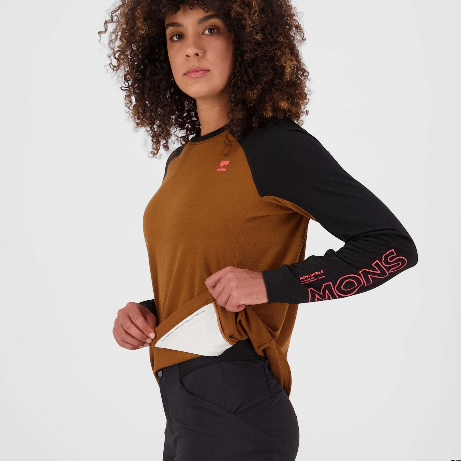 Koszulka damska Mons Royale Tarn Merino z długim rękawem to wytrzymała, szybkoschnąca koszulka stworzona z myślą o wymagających dniach w bike parku i jeździe freeride. Wykonana z tkaniny Merino Recycled Shift, łączy kontrolę wilgoci z dodatkową wytrzymałością, co ułatwia wielokrotne użytkowanie. Oddychające panele z siateczki pomagają odprowadzać ciepło podczas intensywnego wysiłku, a dłuższy, wydłużony tył zapewnia osłonę podczas pochylania się nad kierownicą. Gładki, klejony dekolt i ukryta wyściółka do okularów przeciwsłonecznych zapewniają komfort i wygodę na szlaku.