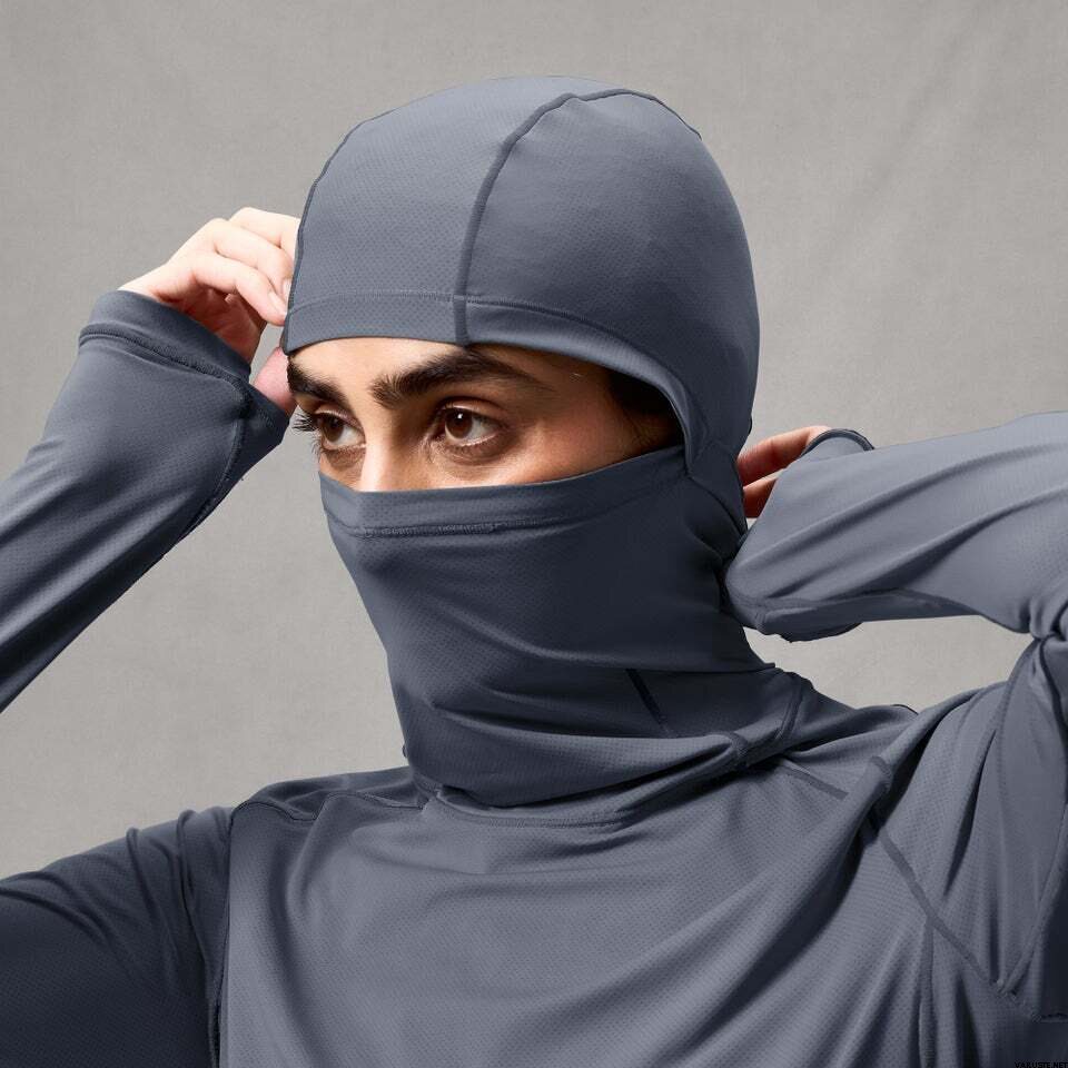 - Zintegrowany kaptur w stylu nurkowania z wbudowaną osłoną chroniącą twarz i szyję przed kurzem i zanieczyszczeniami na szlaku