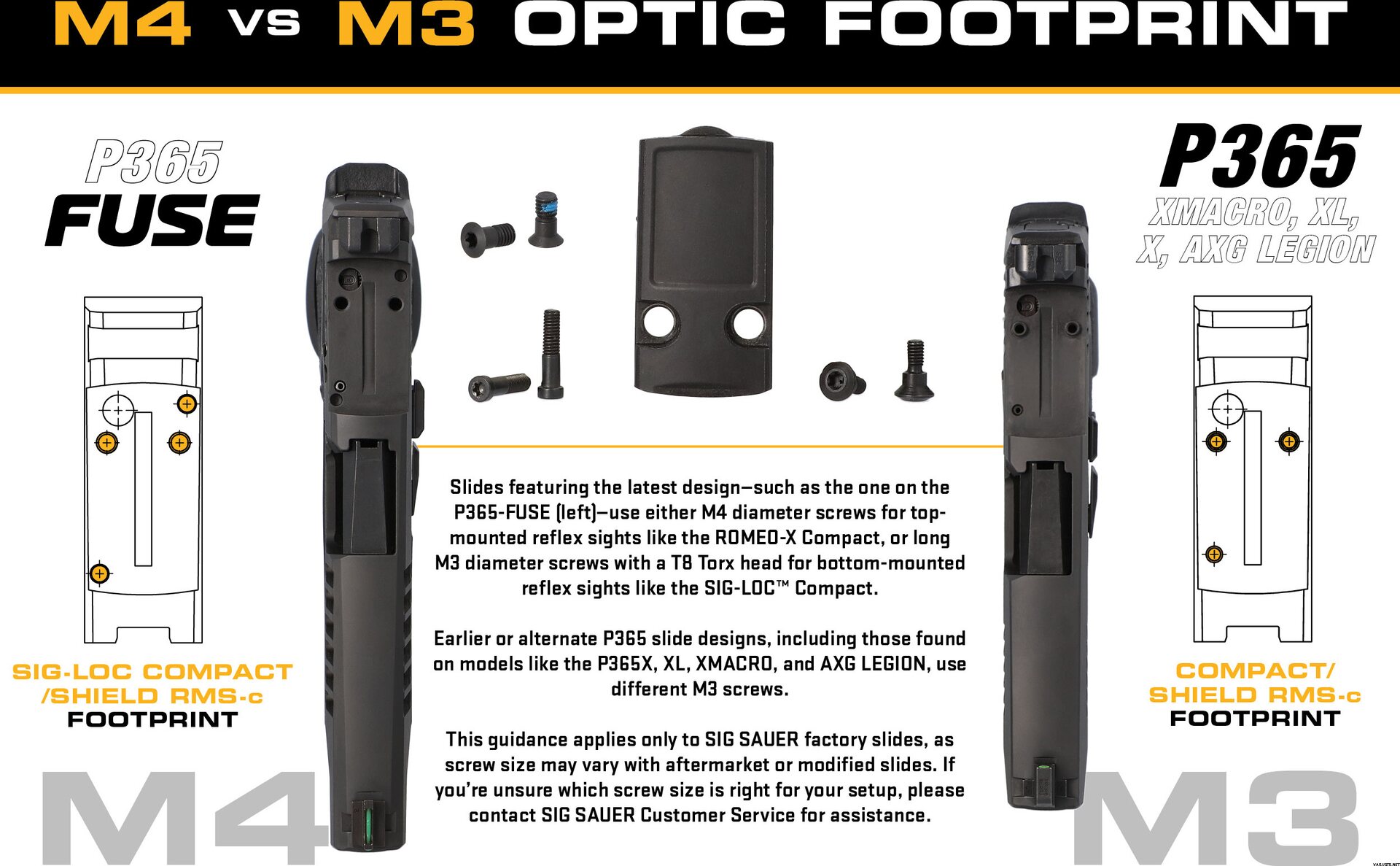Kompatybilny z modelami Gen II P365* (otwory M4), prowadnicami PRO CUT (P320, P226, P229) i dowolnym profilem DELTAPOINT PRO