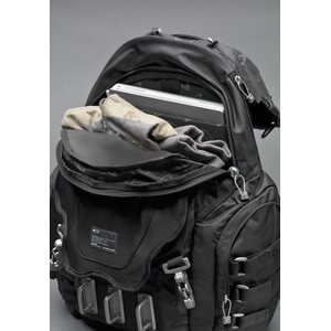 Opis produktuEach Oakley pack has its own prime features. Get them all in one design. The KITCHEN SINK BACKPACK offers every conceivable innovation, from a mobile phone pocket to a padded sleeve that holds a laptop up to 17". The top storage compartment is compression molded to protect eyewear — or use it for a media player and take advantage of the headphone port. Cable zipper pulls let you add a lock to secure the main compartment. The mid-body access flap includes an inner organizer, and a compartment at the bottom has drainage ports for wet or soiled items. You also get plenty of pockets, attachment points and tie downs.