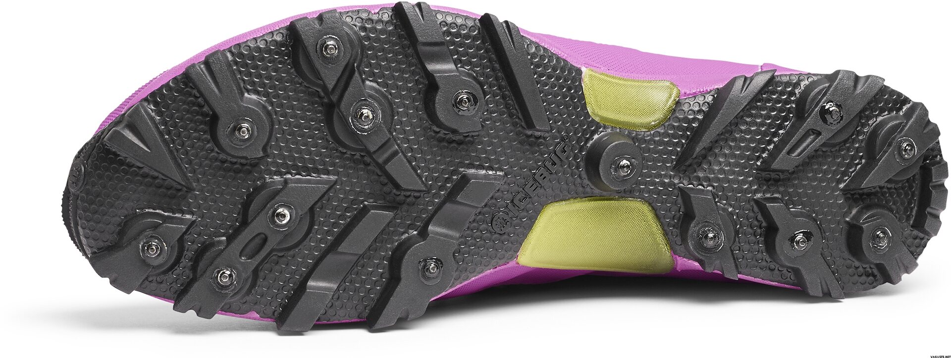 The heel cup has a depression in the heel and has been made even softer to further increase the level of comfort. The height of the heel cup has also been slightly reduced in order to reduce pressure at the Achilles tendon. The upper material is really soft and flexible. Yet it doesn’t compromise the durability, which is very good. The upper material, and the closed-cells of the heel cup, absorb very little water (maximum 20% increase when wet). The upper has molded protective areas and all stitches are done with a Stitch-and-turn technique to protect the thread. The sole unit is a carry-over from the Spirit3, the last season’s updates were very well-received by runners worldwide. The sole has a very low profile to optimize ground control, but yet it’s flexible to allow the foot to move naturally. The outsole has excellent grip, with innovative diagonal ridge pattern, that is enhanced to amazing with 14 integrated carbide tip studs.