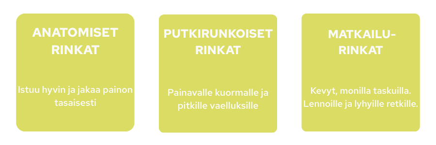 Rinkkoja on suunniteltu eri käyttötarkoituksiin, ja asiakkaidemme tarpeetkin vaihtelevat lentomatkustuksesta ja lyhyemmistä päiväretkistä aina haastaviin ja viikkojenkin vaellukseen, joten myös valikoimamme on suunnattu näille kaikille. Älä eksy siis ostoksilla, vaan lue vinkkimme ja valitse juuri sinulle oikea rinkka. Olitpa sitten suuntaamassa pitkälle vaellukselle, viikonloppuretkelle tai maailmanympärimatkalle, löydät sen valikoimistamme.