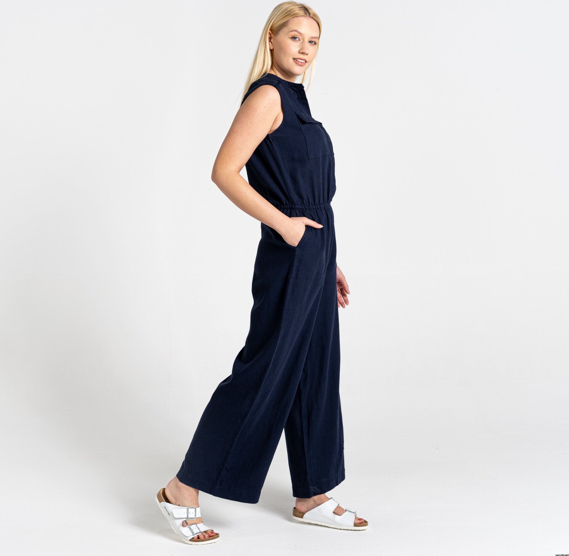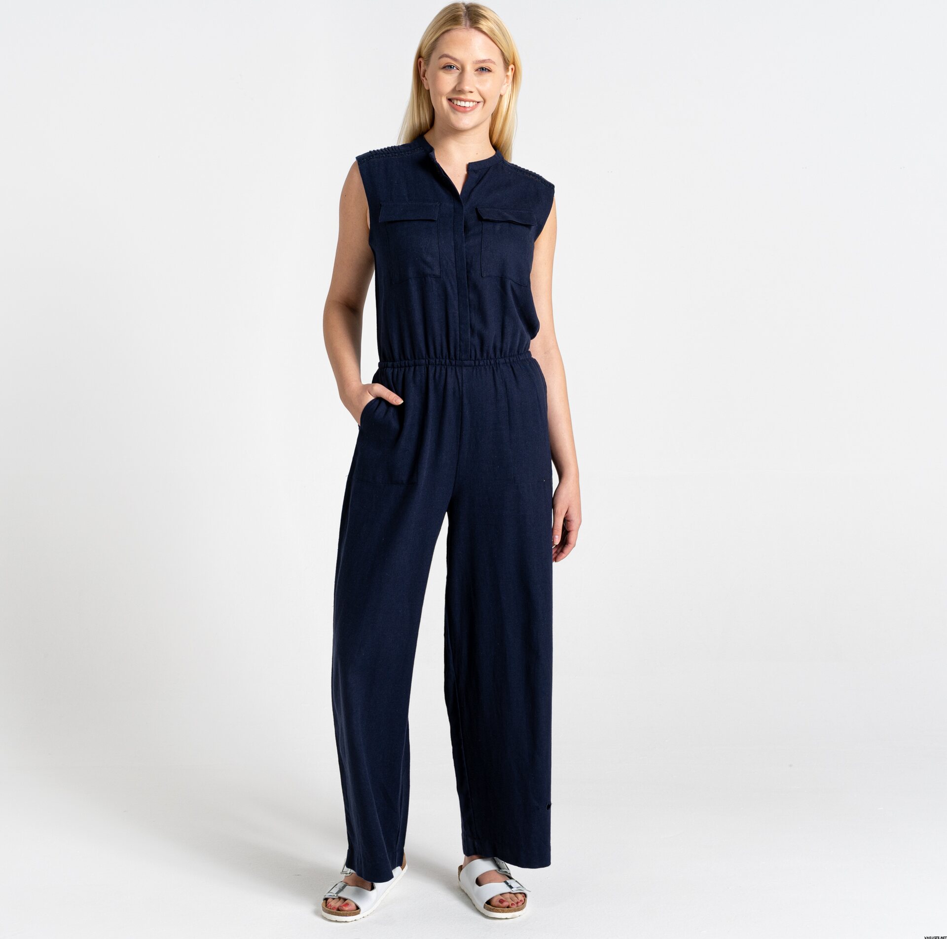 Stylish travel jumpsuit from Craghoppers. The classic striped linen-and-cotton twill is cool and comfortable, with extra protection in hot-climate conditions thanks to the naturally derived NosiBotanical anti-insect treatment (effective for up to 25 washes). Maxima showcases elegant sleeveless styling with lace trim and pintuck detail.