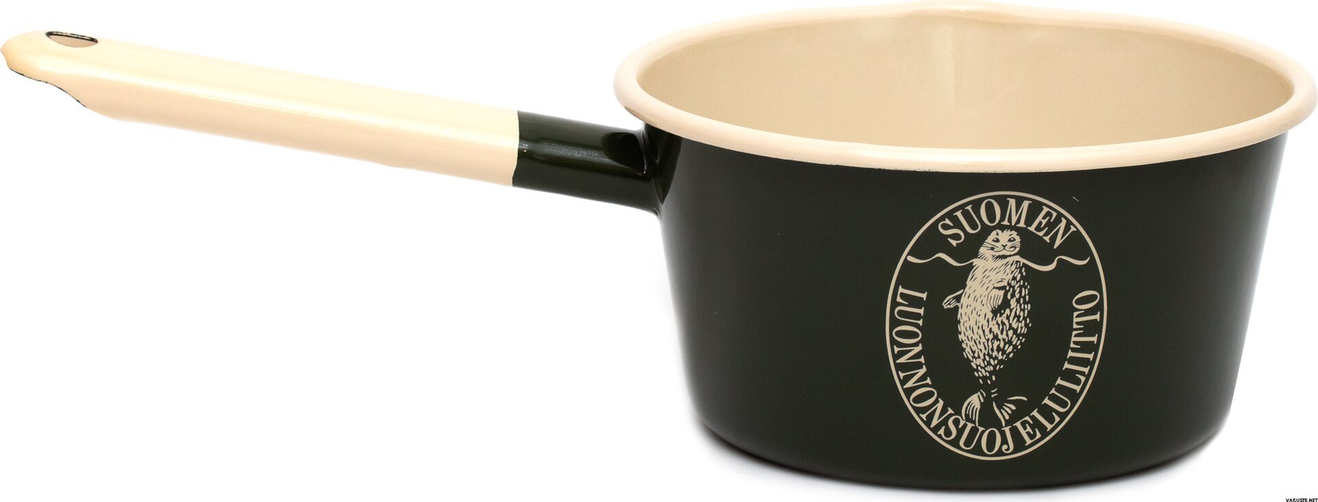 Timeless and classic looking retro enamel pan is the right choice for cooking in the wilderness or taking some of that precious forest lifestyle to home kitchen. Great pan to fry the fresh mushrooms on the camping fire or cooking the trekking foods on the gas stove. Enamelled steel is durable material and pan can be used on electric, gas and induction stoves as well as in oven and fire. Do not put it in the microwave though!