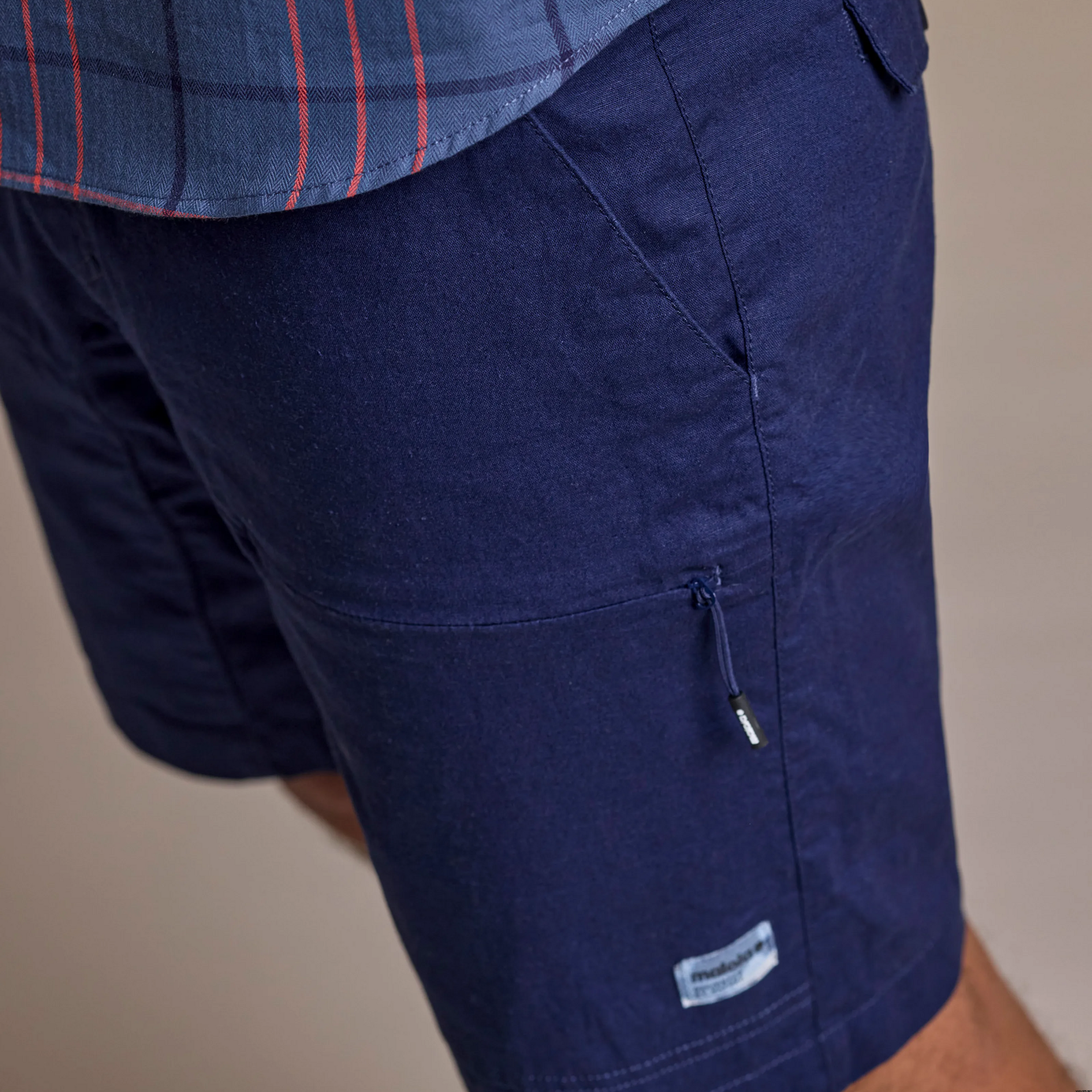 Pantaloni scurți elastici Maloja CrosaM. pentru bărbați, confecționați din cânepă rezistentă și bumbac organic, pentru confort respirabil și mișcare ușoară. Pantalonii scurți pentru exterior pentru bărbați sunt potriviți pentru orice, de la drumeții de o zi la călătorii de zi cu zi, datorită senzației moi și naturale pe piele. Materialul elastic ajută la menținerea pasului liber pe urcușuri și la utilizarea activă. O talie reglabilă cu găici pentru curea și buzunare aplicate cu fermoar păstrează lucrurile esențiale în siguranță în mișcare.