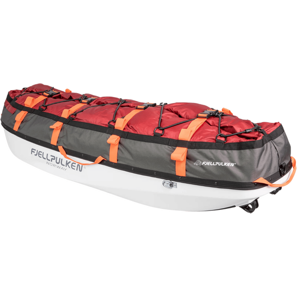 Rucsacul Fjellpulken Touring 145 este un rucsac robust de schi de tură, conceput atât pentru aventuri scurte, cât și pentru cele lungi. Husa sa ripstop pentru sanie, cu o coloană de apă de 10.000 mm și un fermoar Vislon YKK de 8 mm, asigură protecția echipamentului dumneavoastră împotriva intemperiilor. Sania este echipată cu patru chingi durabile de 38 mm cu catarame Duraflex și un șnur elastic Robline de 6 mm, oferind o gestionare sigură și adaptabilă a încărcăturii. Chingile din nailon 1000D care înconjoară sania oferă protecție suplimentară, în timp ce profilul posterior lat sporește stabilitatea pe teren accidentat. Secțiunea frontală este concepută pentru o navigare ușoară peste obstacole.