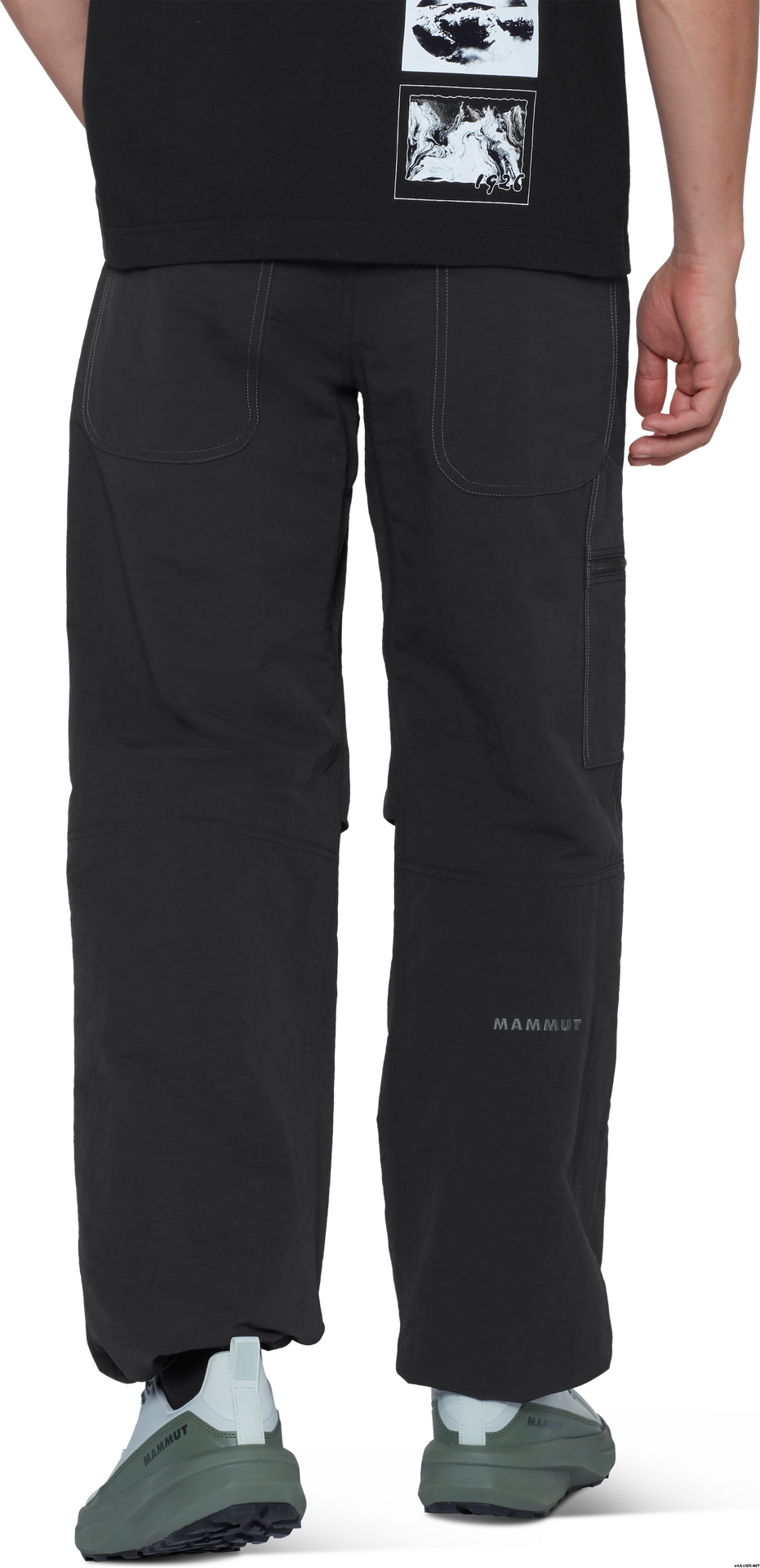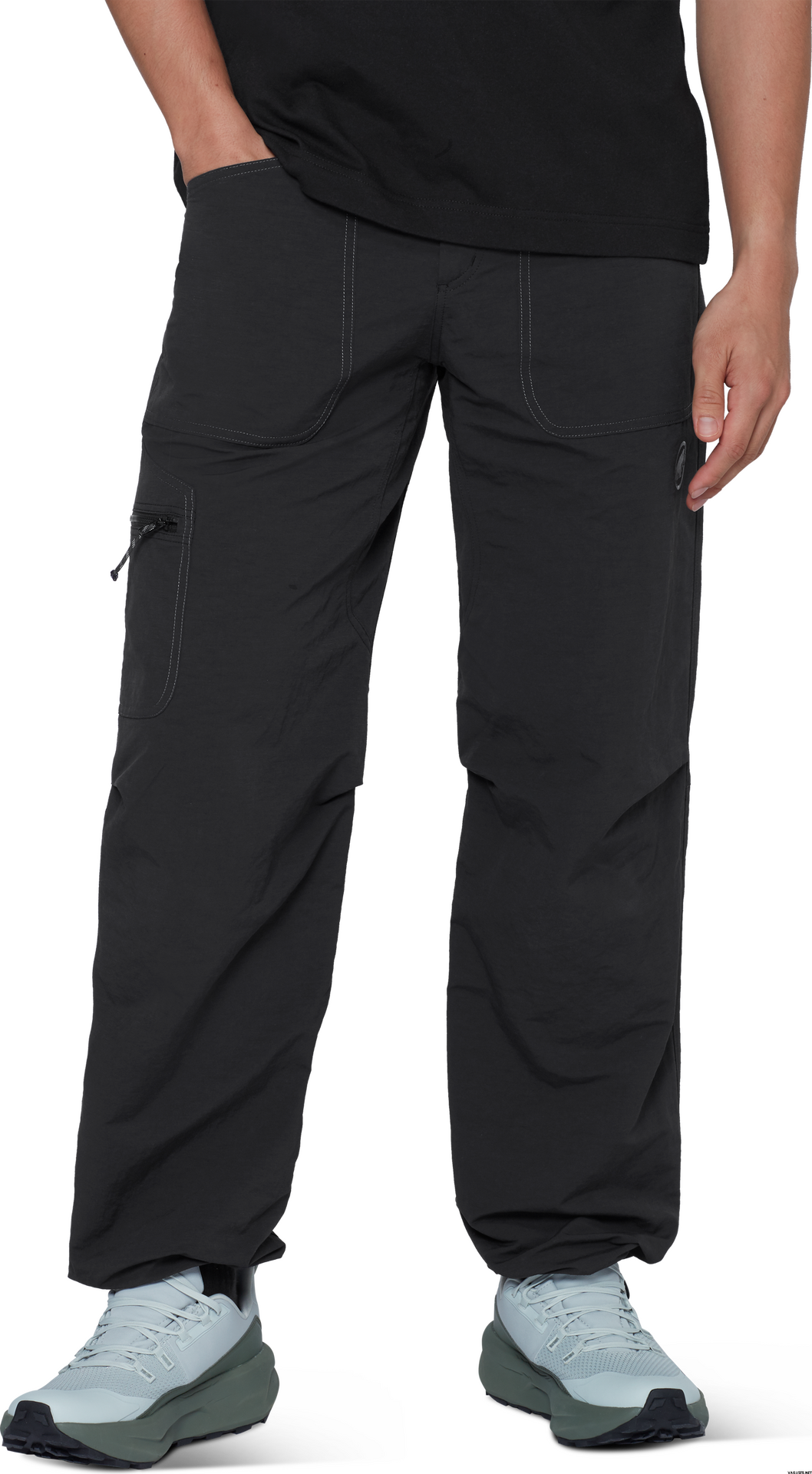 - Buzunar cu fermoar pe picior, compatibil cu hamul, pentru depozitare sigură în timpul alpinismului