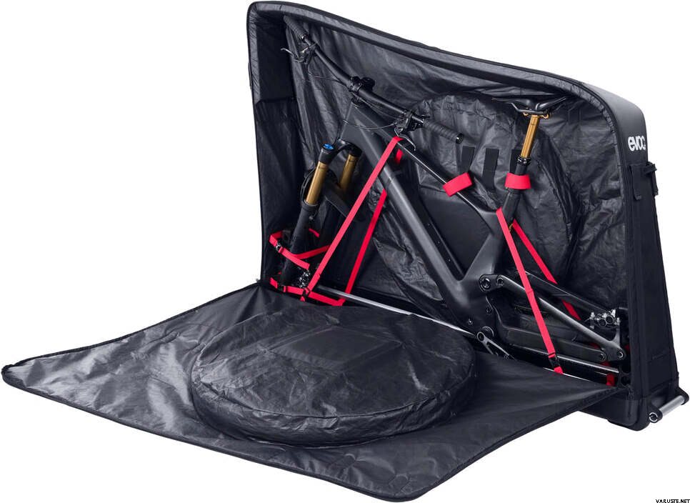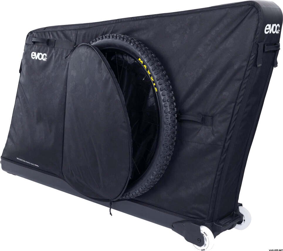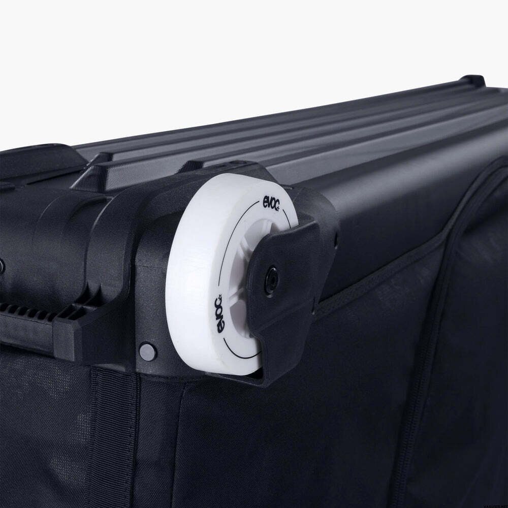 Geanta Evoc Mountain Bike Bag Pro este concepută pentru a simplifica transportul bicicletei tale de munte. Această geantă de călătorie pentru bicicletă are o geometrie optimizată care elimină necesitatea demontării ghidonului sau a cockpit-ului. Prin simpla rotire a ghidonului la 90 de grade și scoaterea roților și a pedalelor, bicicleta ta este gata de călătorie pe suportul reglabil Bike Stand Pro. Acest lucru este deosebit de benefic pentru bicicletele cu cockpit-uri integrate și cabluri trase intern. Fiind cea mai ușoară geantă de bicicletă disponibilă, se mândrește cu o bază robustă din policarbonat, asigurând o protecție fiabilă pentru bicicletele cu un ampatament de până la 130 cm în timpul deplasării. Geanta dispune, de asemenea, de roți de patinaj reproiectate și înlocuibile, pentru o deplasare lină și silențioasă prin aeroporturi și gări.