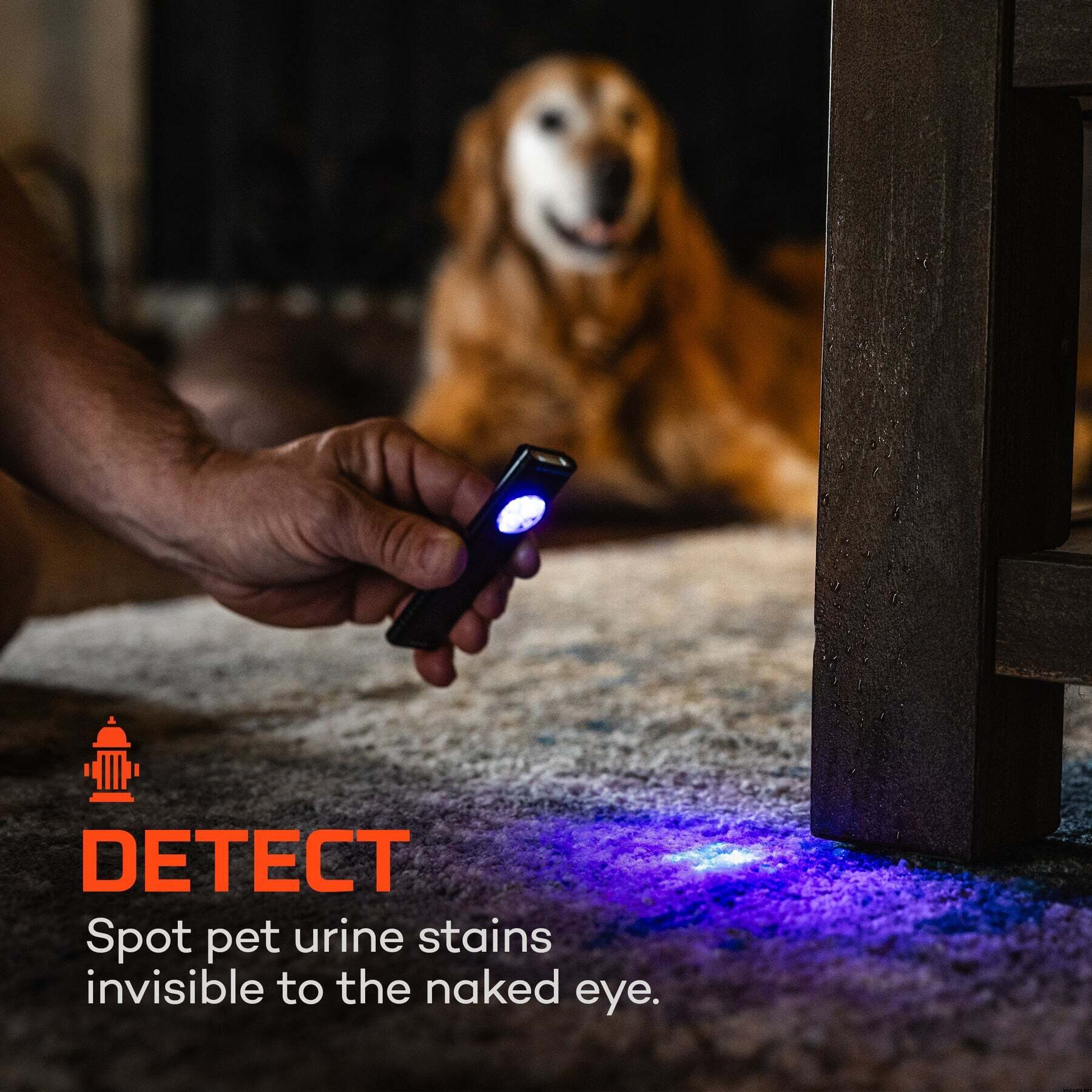 • Ideal pentru detectarea petelor de urină de animale și a scurgerilor de la vehicule cu ajutorul coloranților UV