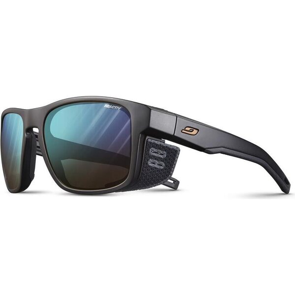 Ochelarii de soare Julbo Shield M Negru/Negru cu Flash Albastru Reactiv 2-4 se remarcă prin lentilele fotocromatice cu reacție rapidă, care se adaptează la o gamă largă de lumină pentru sporturile montane solicitante. Acești ochelari de soare sunt concepuți pentru eforturi intense pe urcușuri, combinând ventilația ramei cu o prindere sigură pentru a ajuta la reducerea aburirii și a mișcării nedorite. Protecțiile laterale detașabile din material textil adaugă o acoperire suplimentară atunci când condițiile devin luminoase sau expuse. Rama este, de asemenea, pregătită pentru prescripție medicală pentru utilizatorii care își doresc performanță sportivă cu propriile lentile corectoare.