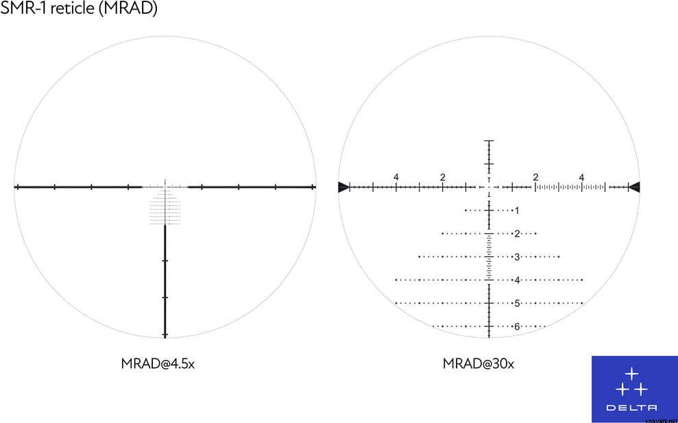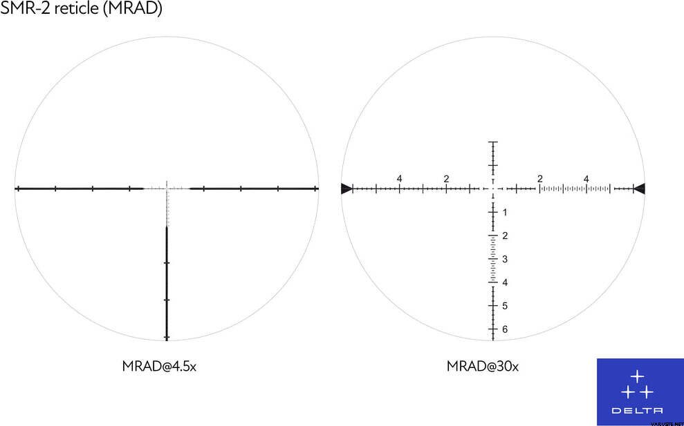 - Opțiuni de reticul iluminat pe primul plan focal SKR-1 MOA sau SKR-2 MRAD pentru subtensiuni consistente la orice nivel de zoom