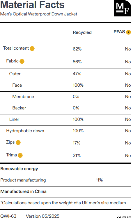 Утеплитель: гидрофобный переработанный пух 700FP (3,8 унции / 110 г, размер M, Великобритания)