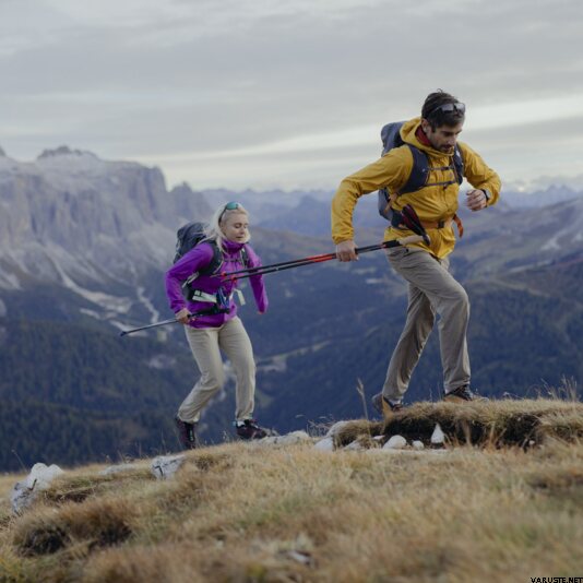 - Прочный нейлон, растягивающийся в двух направлениях, обеспечивает свободу движений во время походов и альпинизма.