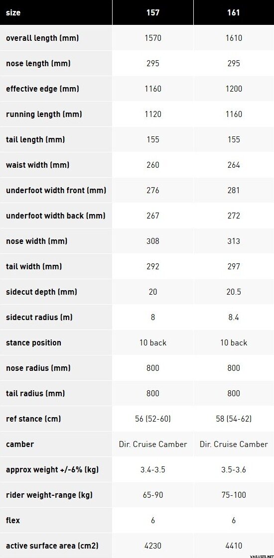 Диапазон веса райдера (кг): 157 см: 65-9 / 161 см: 75-100