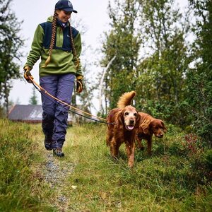 Non-stop Dogwear Retriever Leash je všestranné a robustné vodítko pre psov určené na efektívny výcvik a aportovanie. Vodítko je plne nastaviteľné, vďaka čomu je vhodné pre rôzne tvary a veľkosti psov. Je vybavený dvoma jedinečnými hliníkovými zarážkami, ktoré umožňujú rýchle a bezpečné nastavenie okolo krku vášho psa, čím zaisťujú bezpečné a pohodlné nosenie. Toto vodítko, vyrobené z mäkkého, 100% recyklovaného materiálu, ponúka pohodlie pre psa aj pre psovoda. Ideálny pre psov z útulku a profesionálnych psíčkarov, obsahuje praktickú slučku na základni rukoväte na pripevnenie príslušenstva, ako je zásobník na odpadové vrecia.