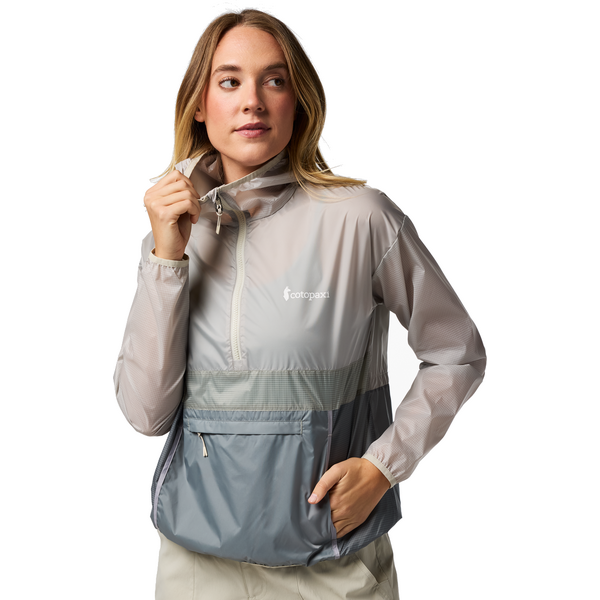 Cotopaxi Teca Half-Zip Windbreaker Womens är en kompakt, väderbeständig lagerjacka designad för att försvinna ner i sin egen ficka när utrymmet är viktigt. Denna vindjacka för kvinnor är byggd för utsatta vandringar, blåsiga turer och lättare resor, och erbjuder vind- och viss vattenbeständighet.