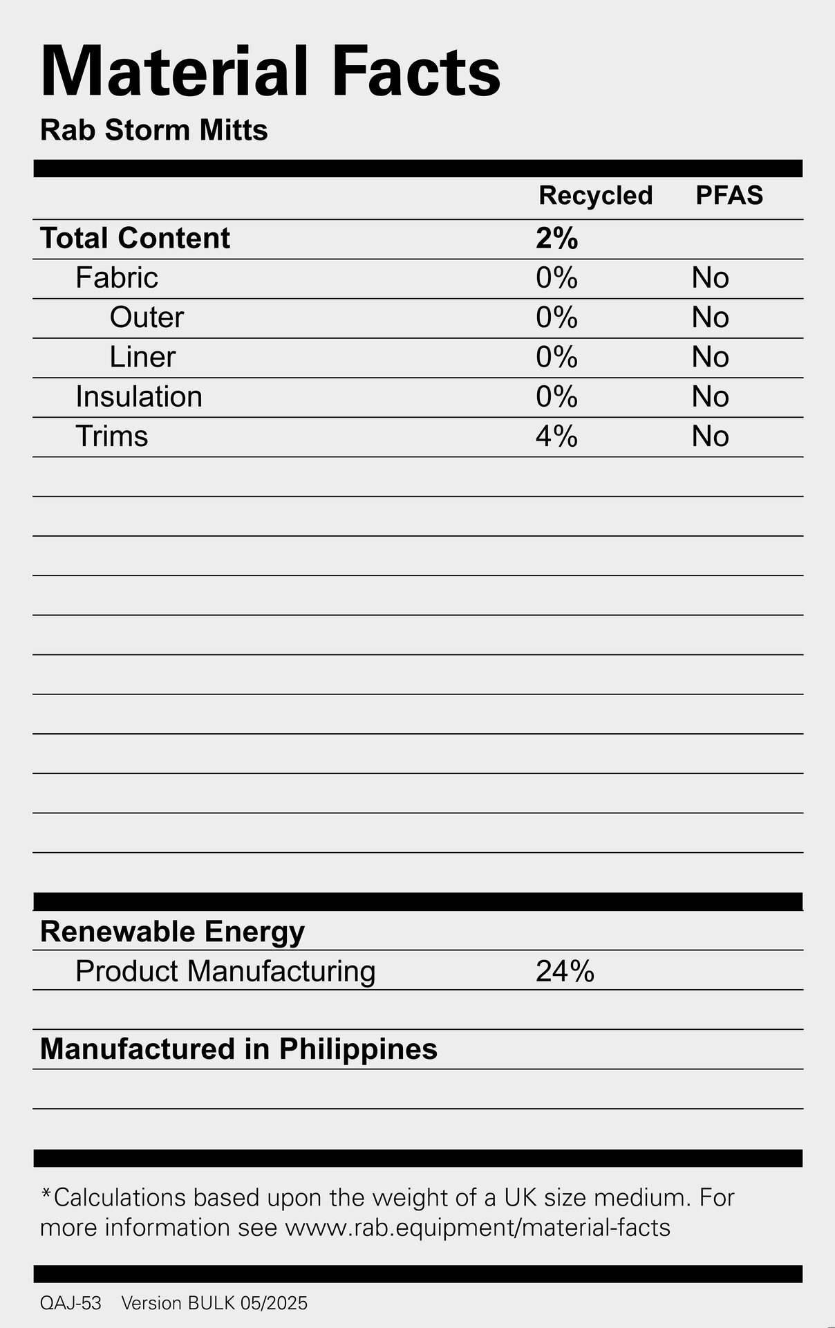 Rab Storm Mitts erbjuder pålitlig värme och vattentätt skydd för olika utomhusaktiviteter. Dessa vantar är utformade för allmänt bruk, bergsvandring och vandring, och är perfekta för att hålla dina händer bekväma i kalla, våta förhållanden. Stratus-isoleringen säkerställer värme samtidigt som den hanterar fukt, vilket gör dem lämpliga för snabba vandringar och vintervandringar. De är förstärkta för hållbarhet och har användarvänliga justeringar för användning i alla väder.