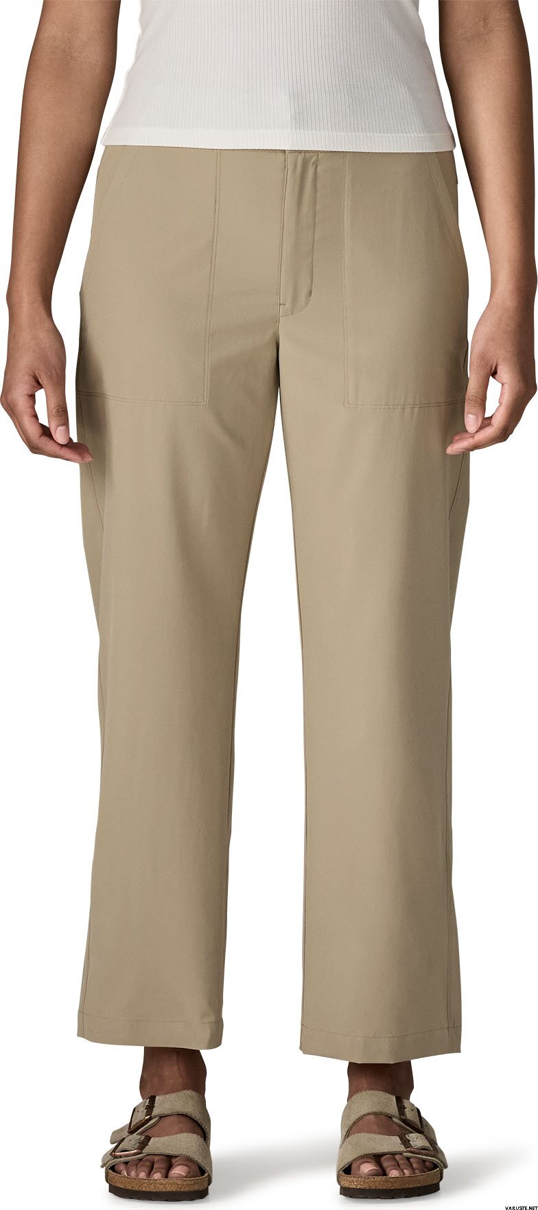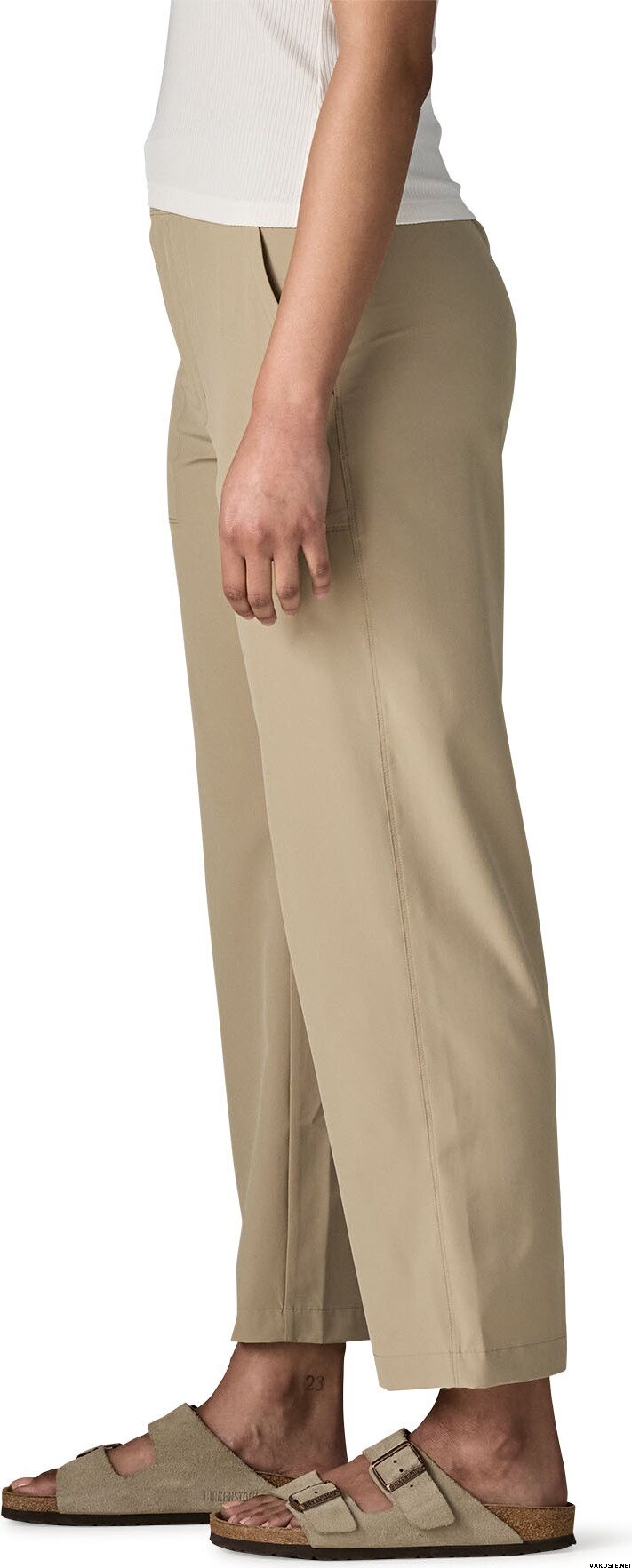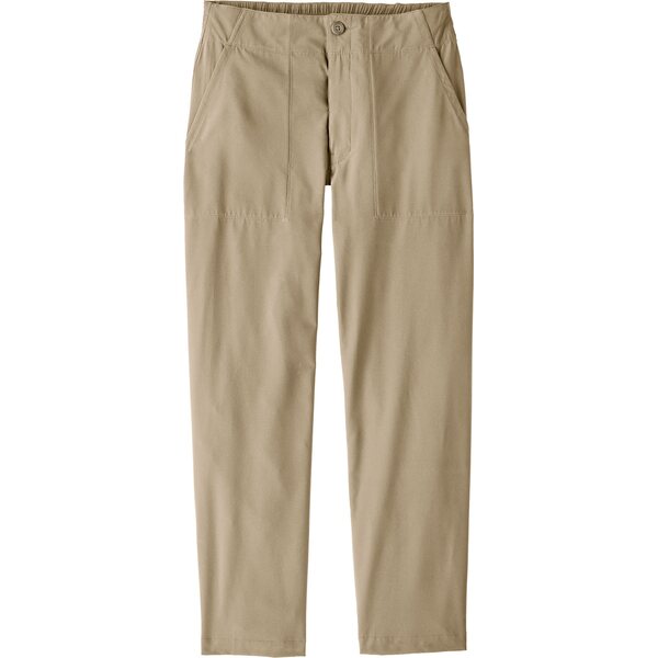 Patagonia Roamwith Pant Womens är designade för dig som älskar att resa och leva livet i farten. Dessa fritidsbyxor för kvinnor har en hög midja, normal passform, tillverkade av återvunnen polyester och elastan för en bekväm och flexibel upplevelse. Den strukturerade midjebandet fram med knapp och dragkedja garanterar en säker passform, medan den elastiska ryggen ger bekvämlighet och frihet runt midjan.