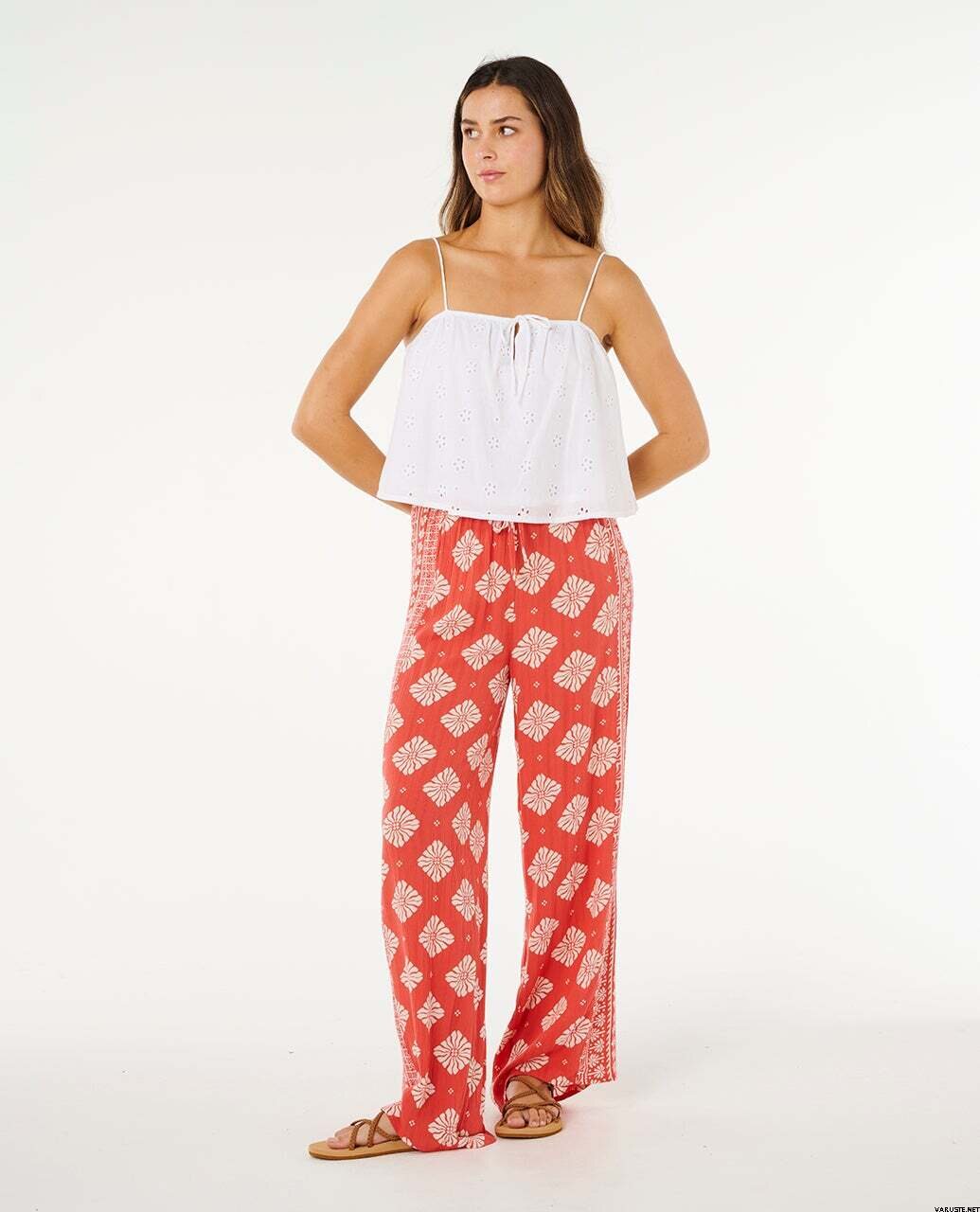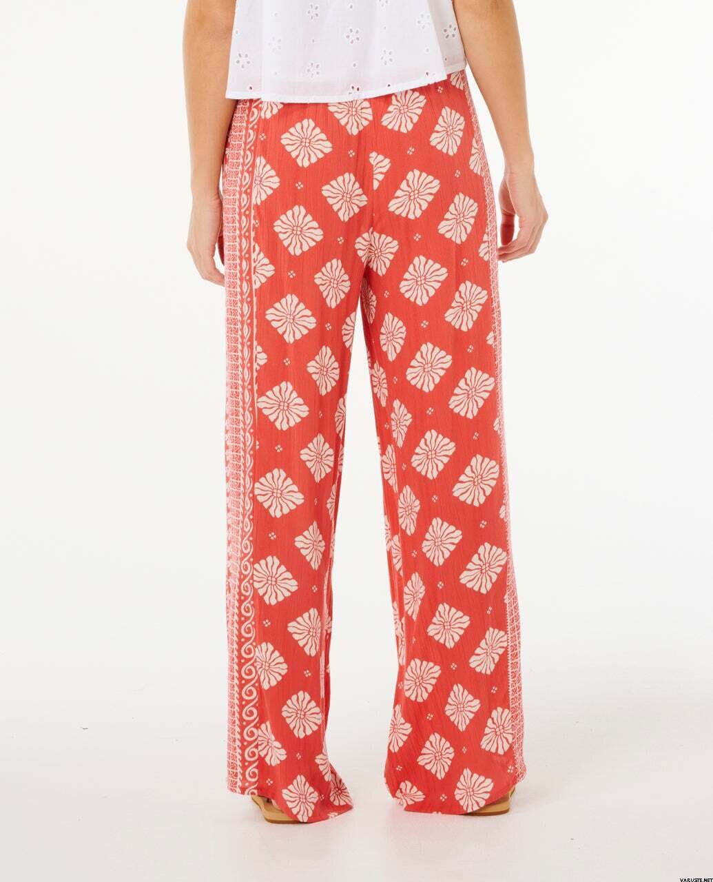 Rip Curl Ventura Wide Leg Pant Womens ger en avslappnad och luftig look med en smickrande hög midja och en iögonfallande sidsömskantdetalj. Dessa dambyxor är designade för avslappnade stranddagar, resor och varma kvällar, med justerbar dragsko i midjan för en personlig känsla. Mjukt tyg och ett heltäckande tryck ger komfort och stil som passar bra med enkla toppar och sandaler.