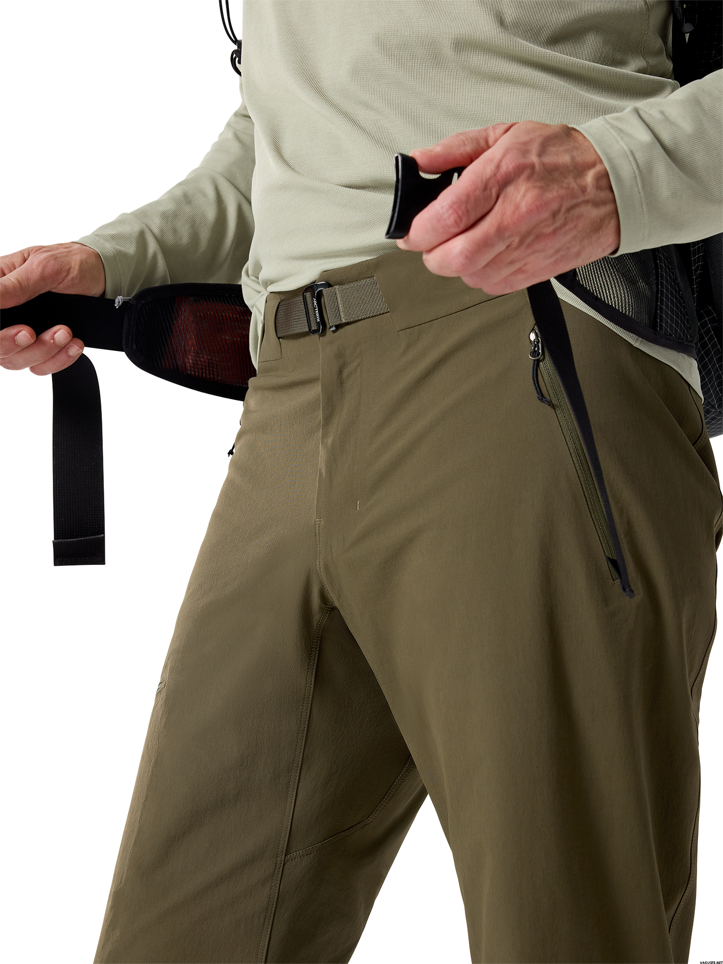 - Dragkedjaförsedda handfickor och selekompatibel lårficka för säker förvaring