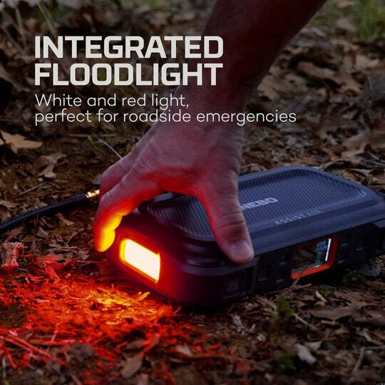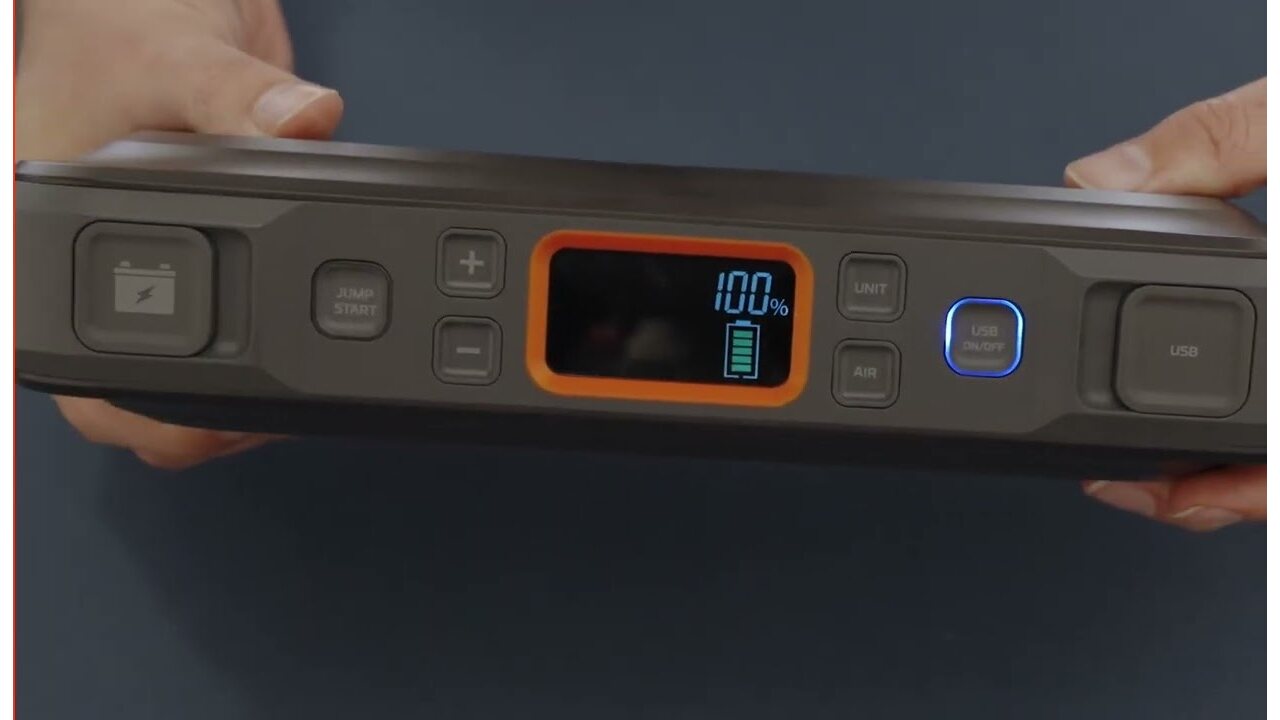 - Levereras med USB-C till USB-A-adapter, startkablar, förlängning av luftslang, luftmunstyckssats, 12V-billaddare och förvaringspåse