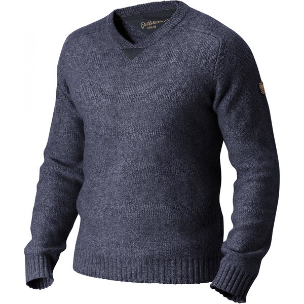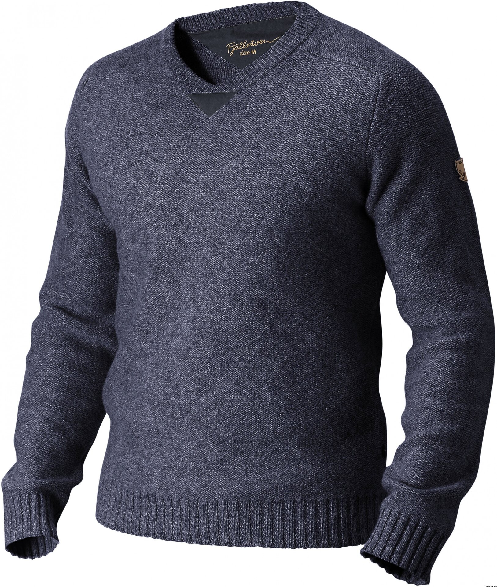 ProduktbeskrivningVarm och skön lammullströja med raglanärm i snygg avigstickning. Ribbstickad mudd nertill och i ärmslut. Förstärkningar i G-1000® på armbågen och i v-ringning.