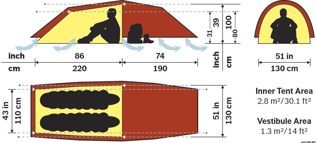 • 3-säsongersdesign: ventilationen är inbyggt i konstruktionen och innertältets nätsektioner har inga vävluckor för att täcka över dem med.