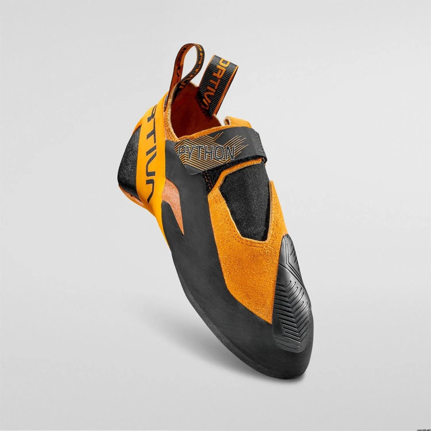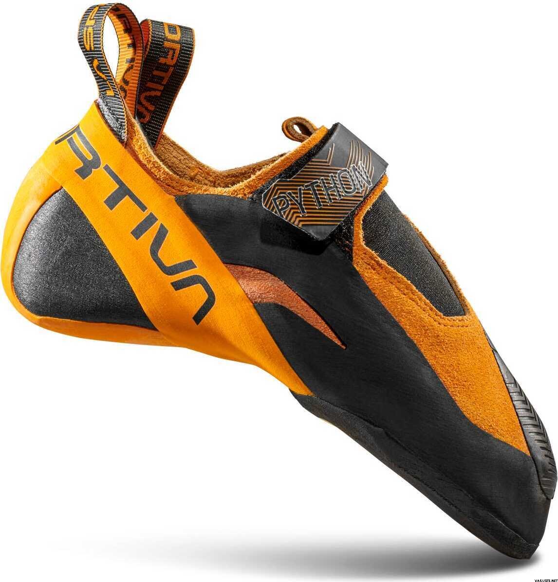 Denna La Sportiva klättersko är särskilt lämplig för hälkrokar och omvända grepp. Python är en åtsittande sko som använder en innovativ stängningslösning tack vare ett kardborreband som blockerar foten på plats under hälkrokar och förhindrar att skon glider av under hälkrokar och vid den mest extrema användningen. Hälens konstruktion är också innovativ: den använder ett mycket greppvänligt, tätt passande gummi som inte lossnar med fördelarna med en skalkonstruktion utan med känsligheten vid hälen hos en traditionell konstruktion. Det ultragreppbara gummit finns även på framsidan tack vare ett inlägg designat för tåkrokar. Sulan är en Vibram Xs Grip 2-blandning för maximalt grepp.