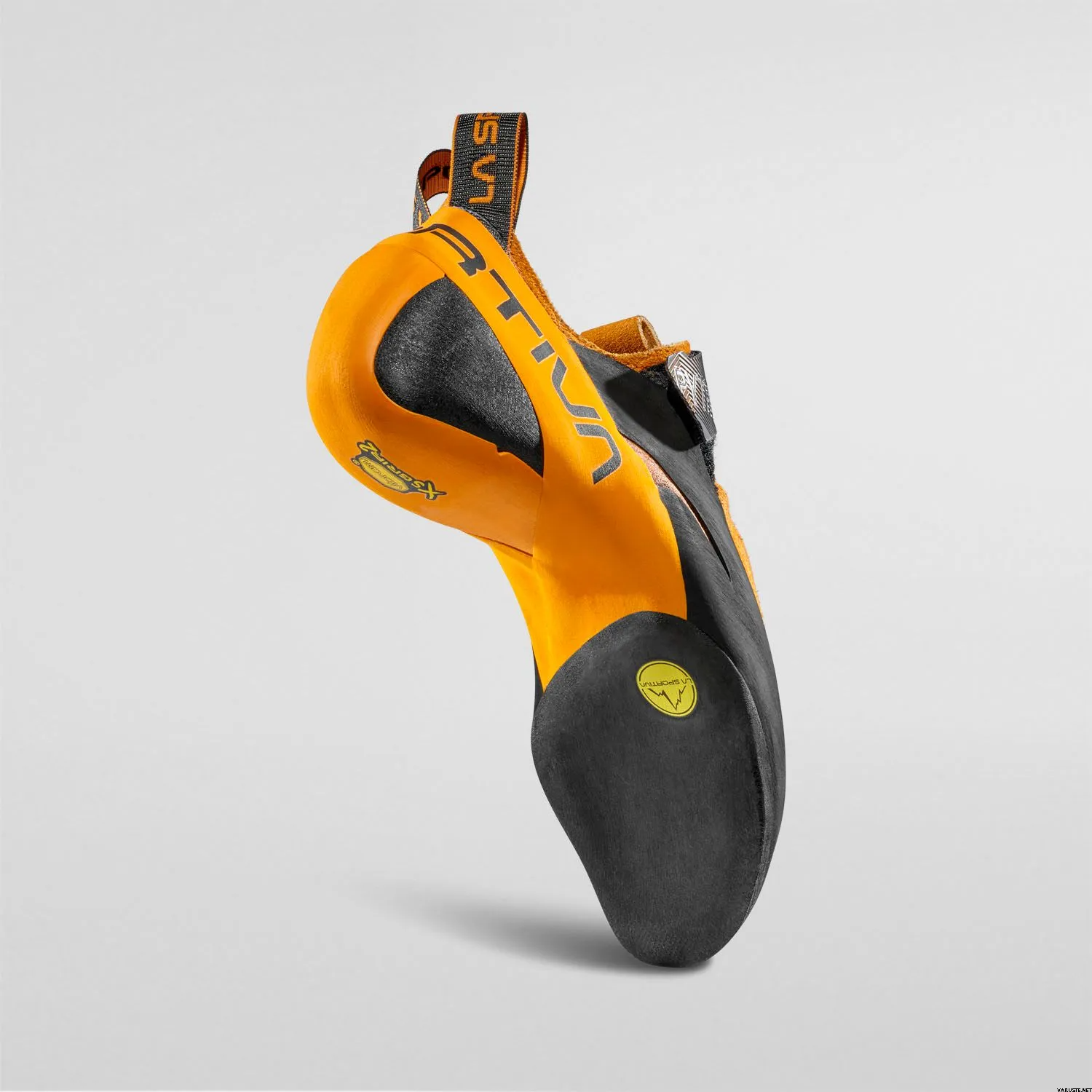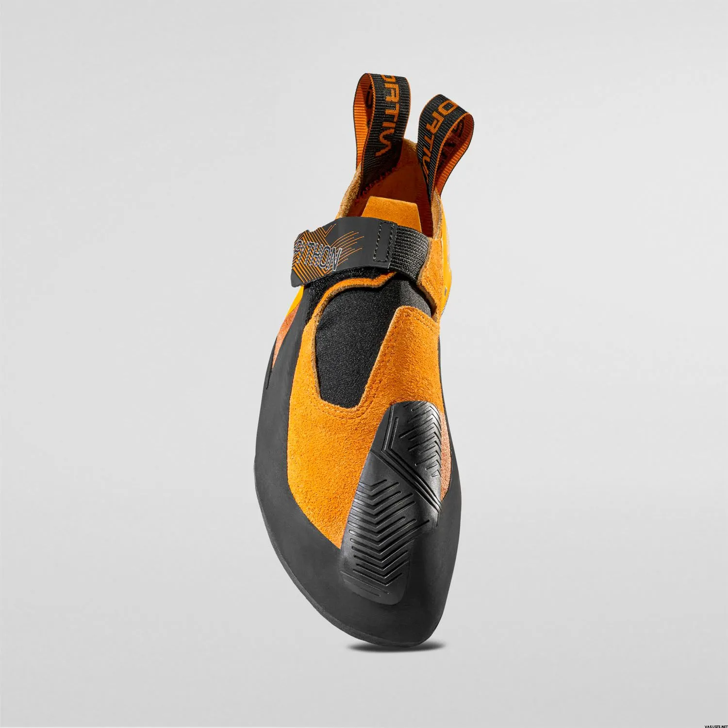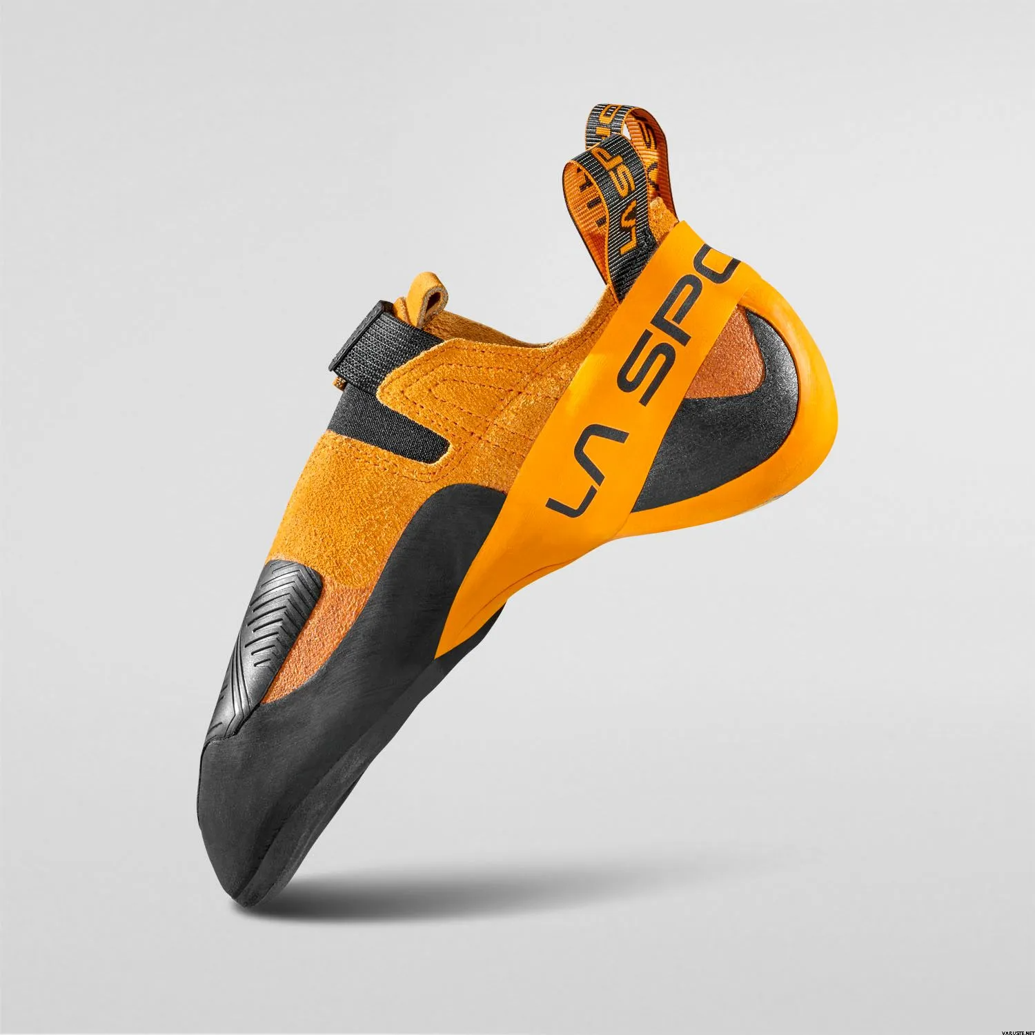 Känslig och åtsittande klättersko med kardborreband som stadigt håller skon på plats under hälkrokar