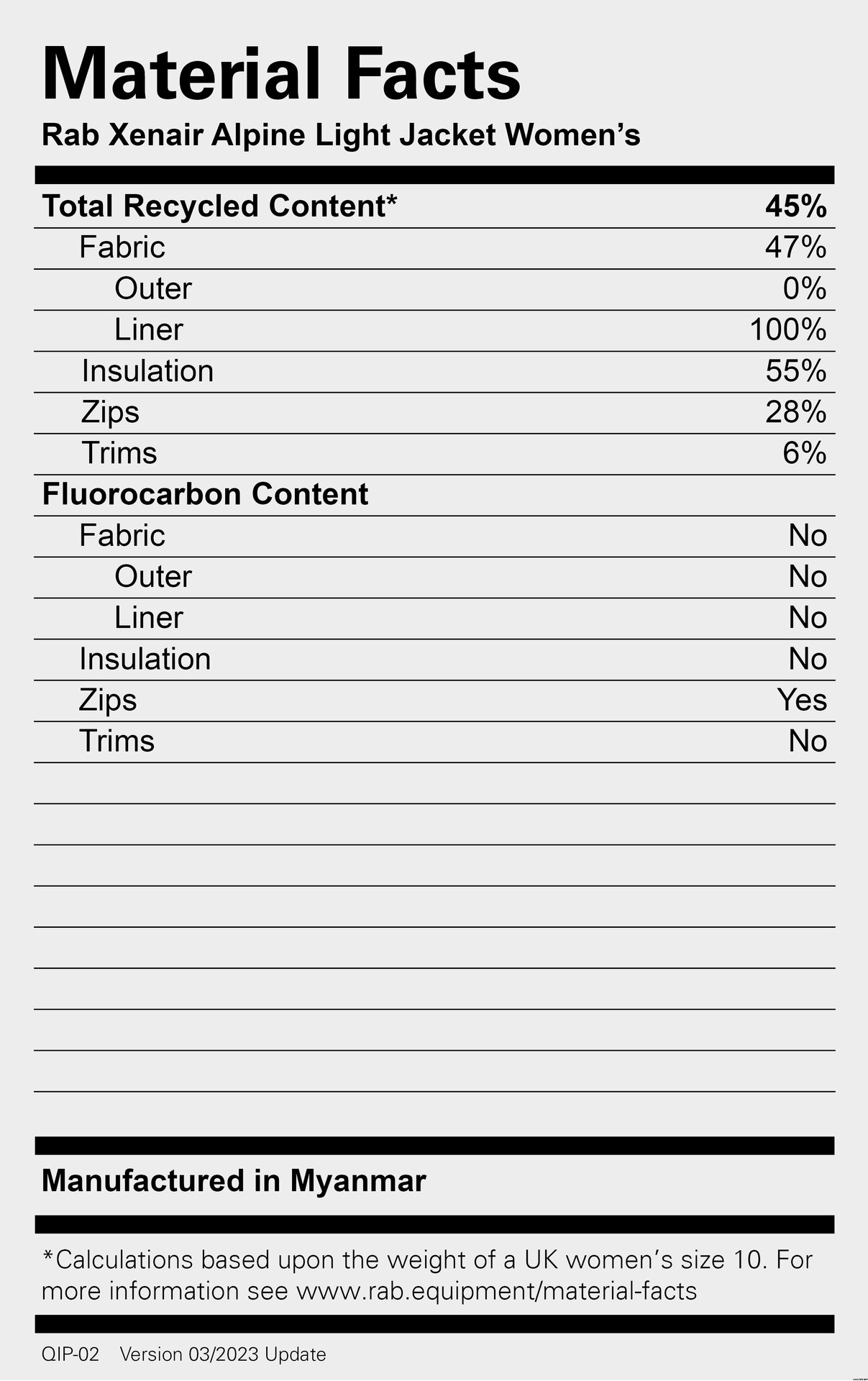 Adaptable, lightweight, and versatile, the Xenair Alpine Light Jakcet is a dual weight, synthetic insulated jacket that excels in mixed conditions and start stop activities. Featuring a highly breathable, weather resistant Pertex® Quantum Air outer and two weights of recycled PrimaLoft® Gold Active+ insulation, it has been engineered to hold warmth when you’re static and allow airflow as soon as output increases. Strategically body mapping the different densities of insulation, with the lighter weight insulation under the arms, through the sides, down the spine and on top of the head, the jacket efficiently balances body temperature and eliminates the need to constantly change layers.