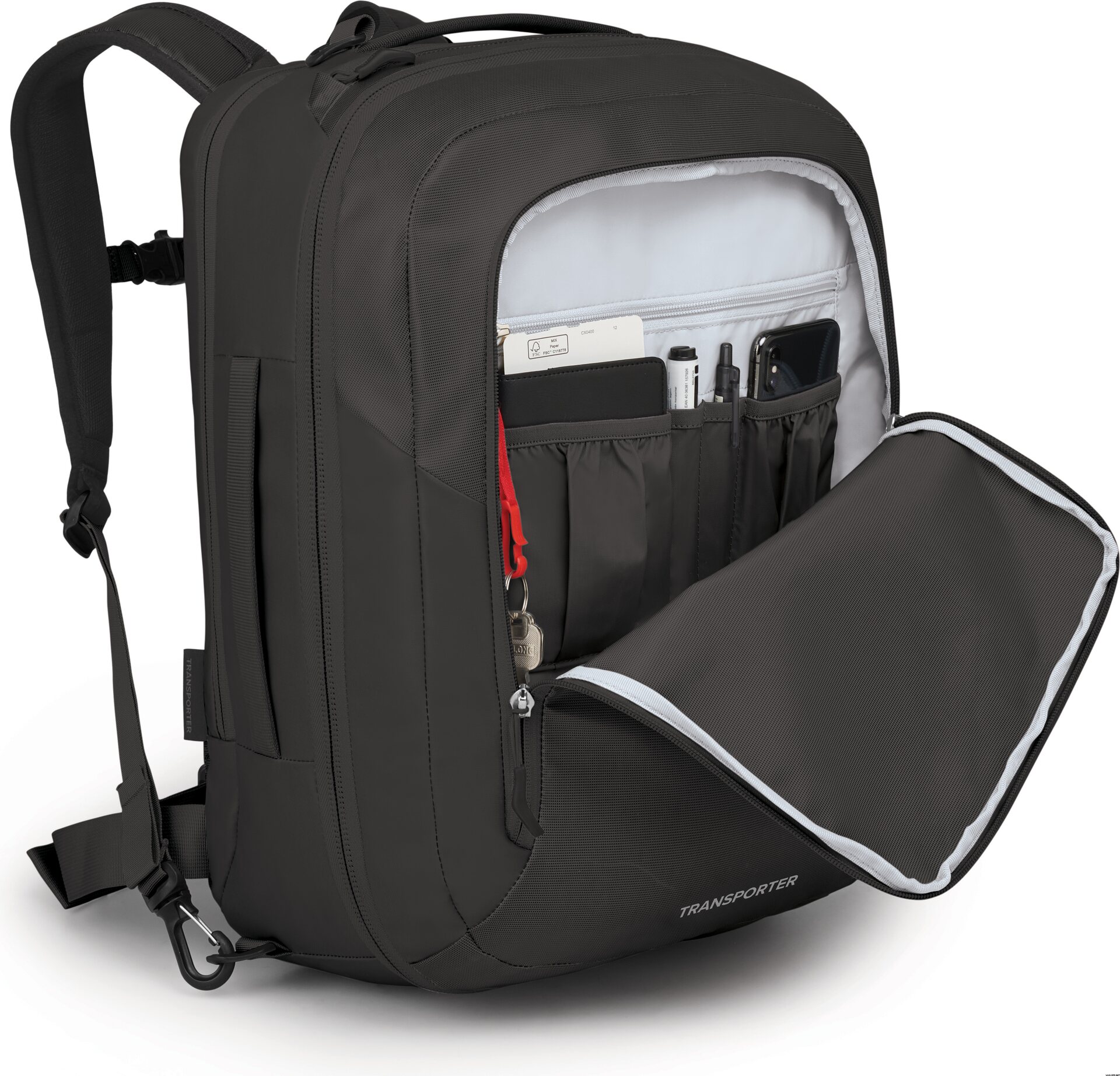 The Transporter® Global Carry-On Bag 36L/19.5" is ready for takeoff with a zippered external pocket for toiletries, rear panel access to a padded laptop sleeve and a fully-flat opening for easy packing.