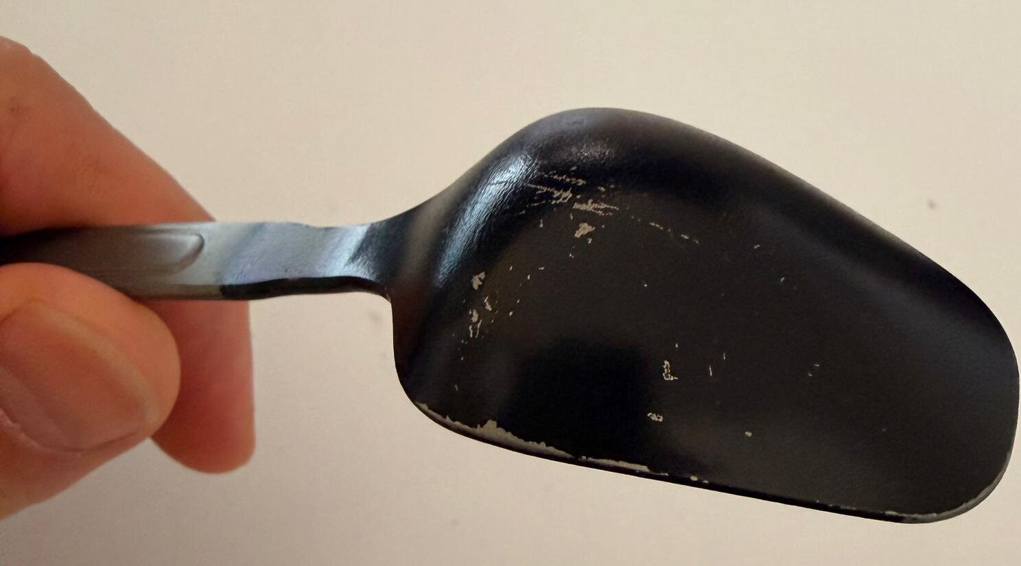 它就是一把勺子,能用,对我来说最重要的是:它很长,所以我徒步旅行时用它从1升的Nalgene水瓶里舀午餐吃。 陶瓷涂层一周后就磨损得比较厉害了。