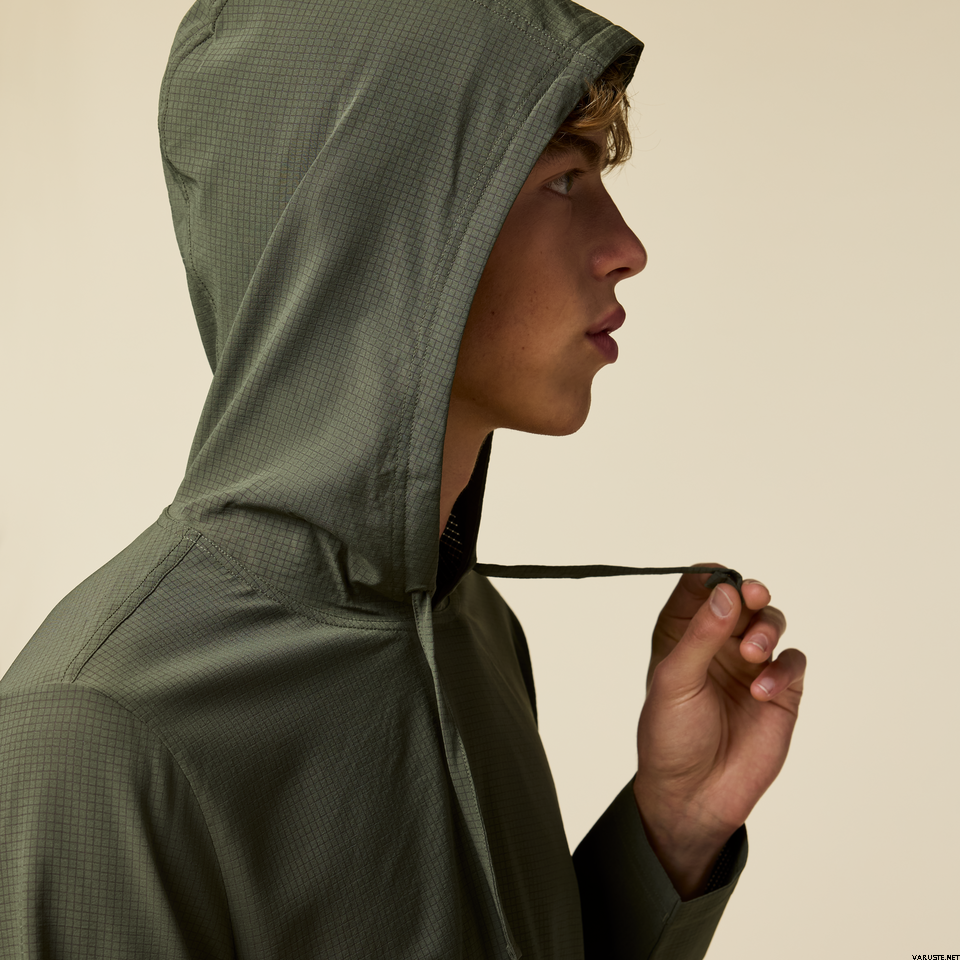 - 可调节抽绳兜帽,方便微调遮盖范围和贴合度