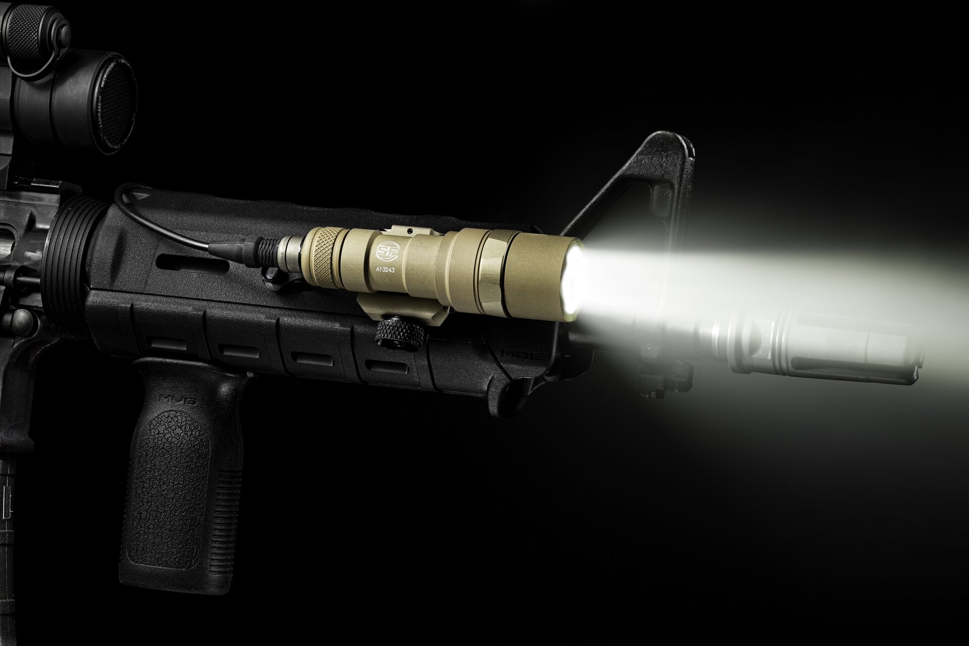The SureFire M300 Mini Scout Light, powered by one 123A lithium battery, is a compact, lightweight, powerful LED WeaponLight that mounts securely to any Mil-Spec Picatinny rail via an integral thumbscrew clamp. Its recoil and shock-proof LED emitter is focused by a TIR lens to create a high-intensity 200-lumen beam with plenty of reach for close- to medium-range applications with enough surround light to optimize situational awareness.
