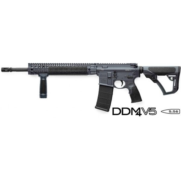 The Daniel Defense M4 Carbine, V5 is perfectly adapted for end-users who plan on attaching the ever popular red dot, holographic or magnified optics to their firearm. The slick top monolithic upper receiver provides operators with valuable top rail real estate for accessories that fit their shooting needs. The DDM4v5 is equipped with a single pinned low profile gas block that is drilled, taper reamed, and press fit into place to securely attach the low profile gas block to the barrel assembly. This rifle also comes with the newly designed, rugged and comfortable Daniel Defense Buttstock and Pistol Grip.